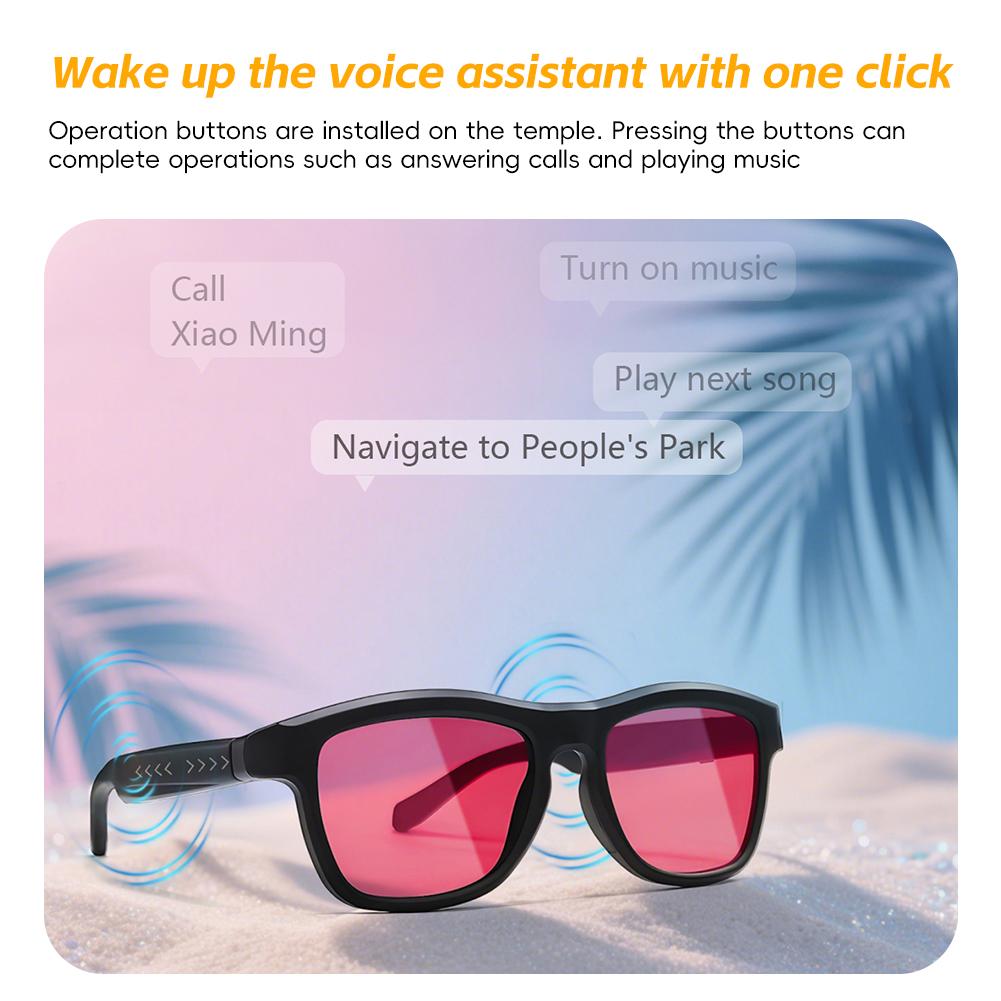 The Bluetooth glasses integrate multiple functions such as AI translation, calls, music playback, voice assistants, and remote photo taking, making them great helpers for outdoor sports and travel.