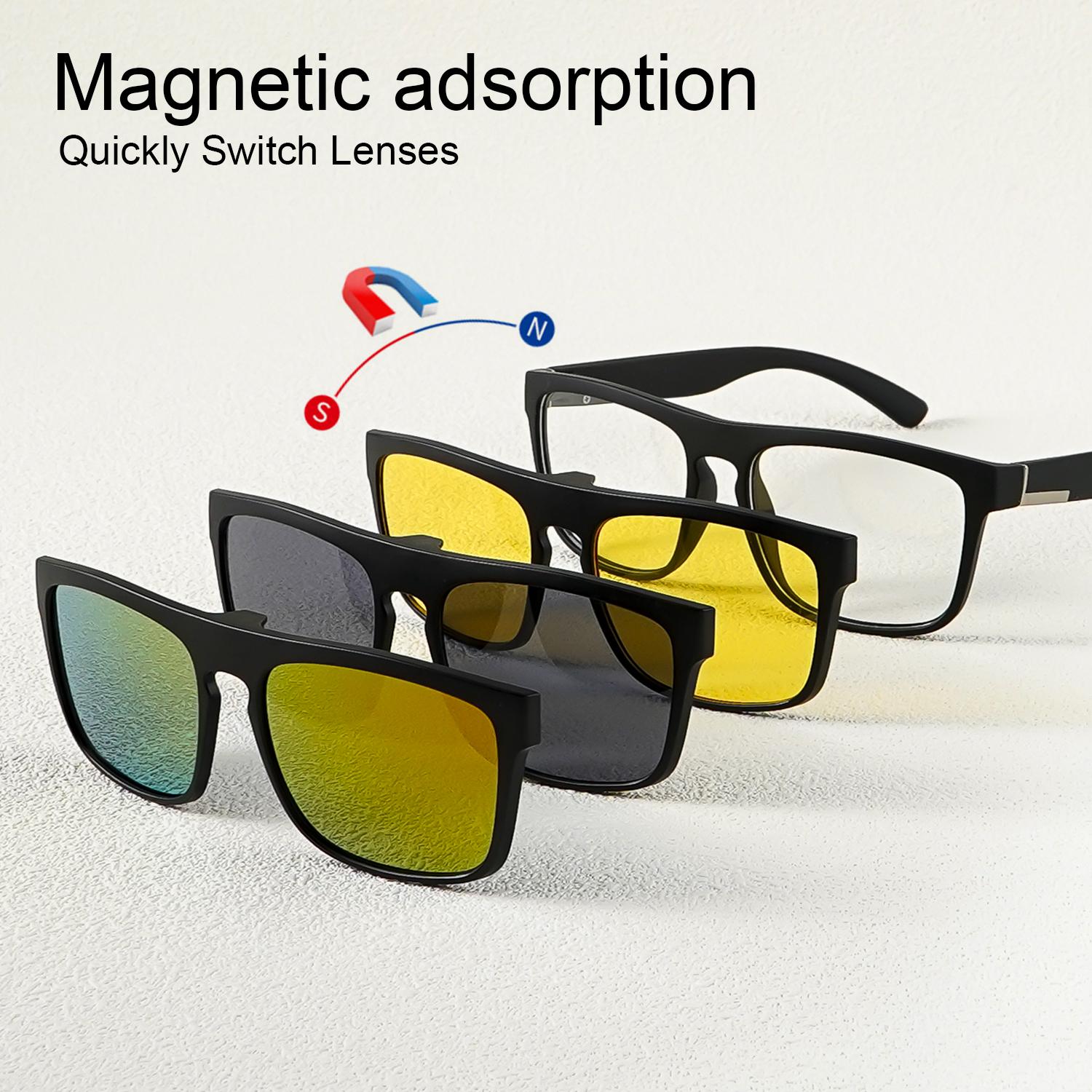 A New Set of Magnetic Clip-On Design Fashion Glasses, 1 Frame, and 3 Interchangeable Lenses, Perfect for Everyday Use and Party
