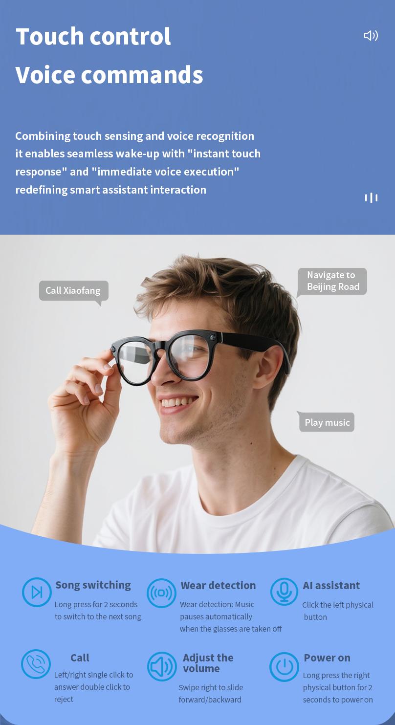 AI Camera Intelligent Recognition Voice Call Noise Reduction Sunglasses 1080p HD Mini Camera Glasses Sports DVR Monitoring