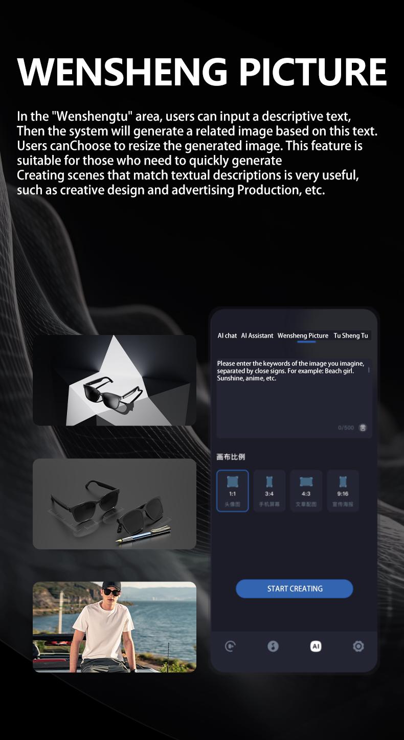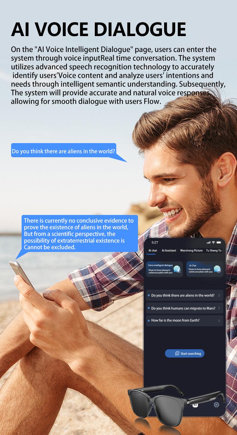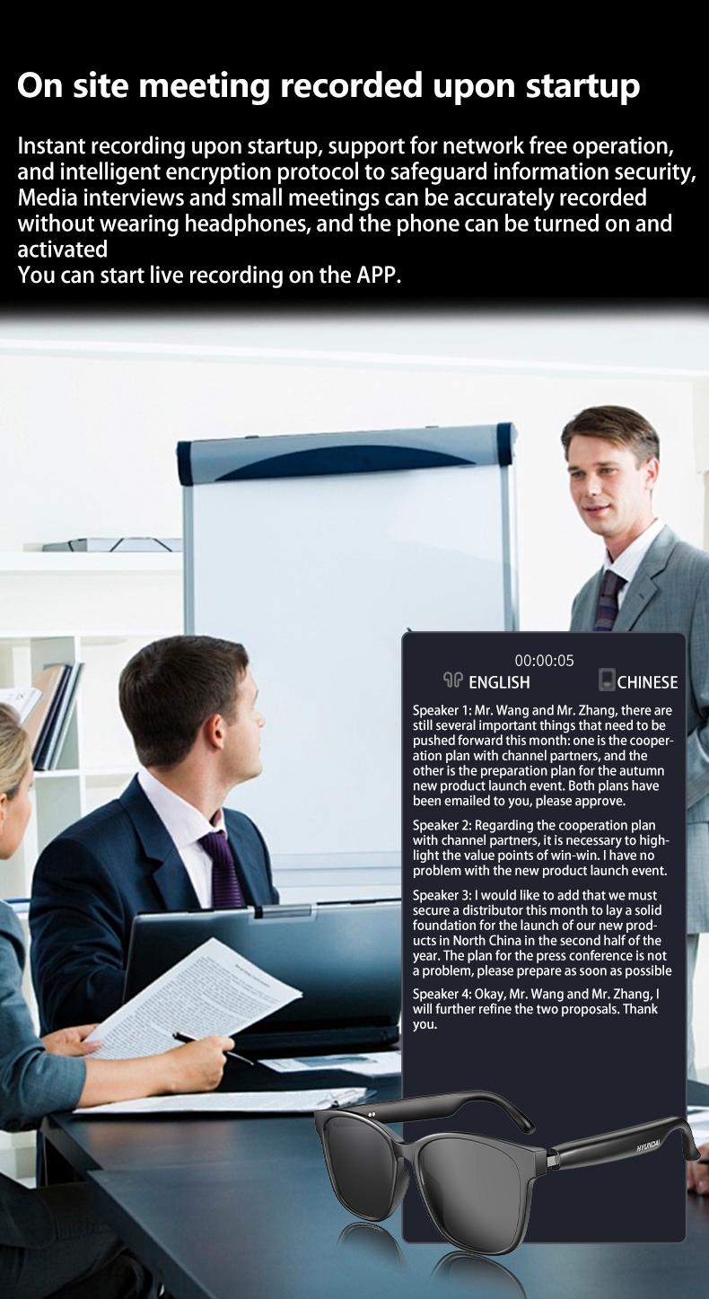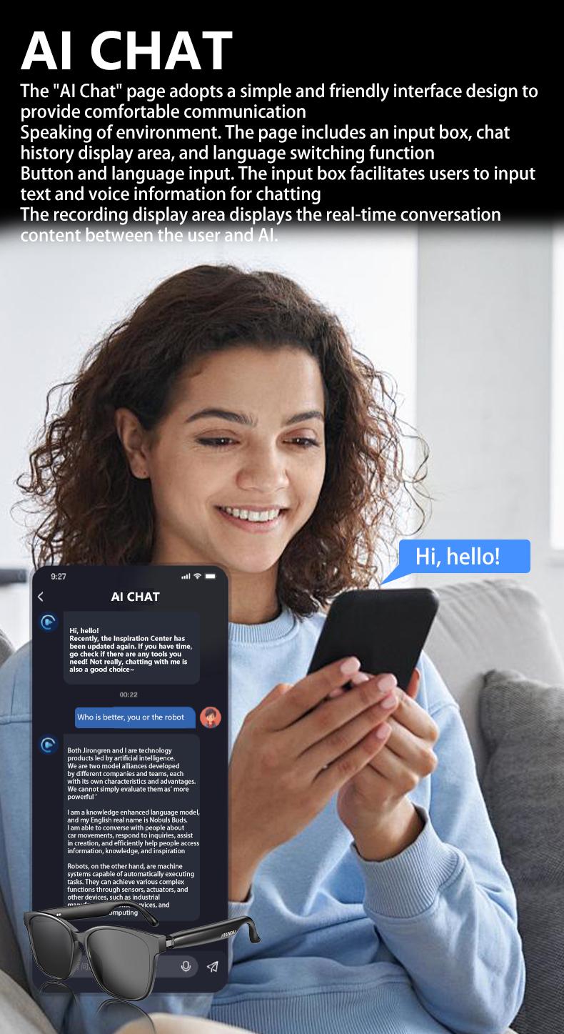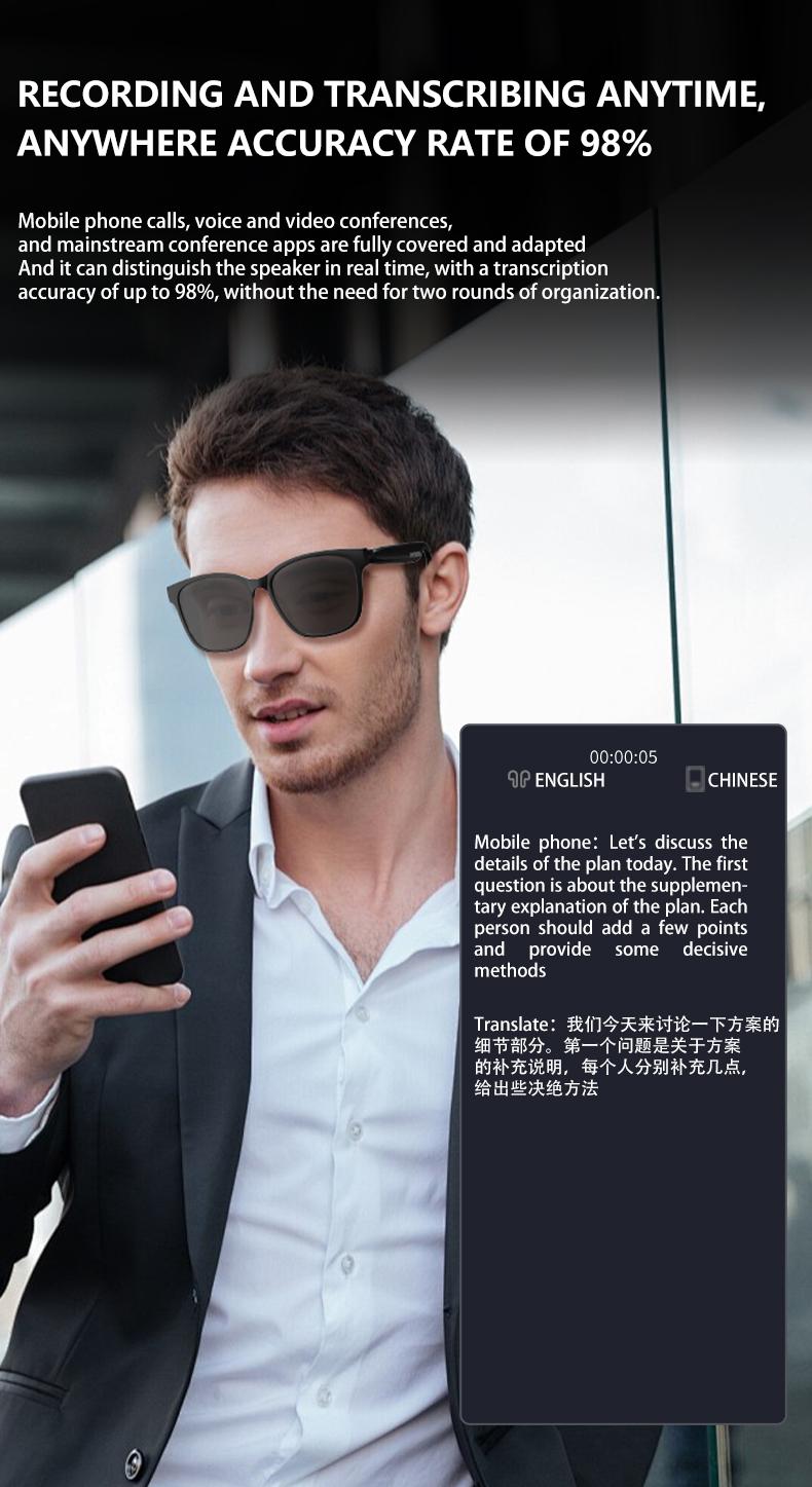 AI Smart Glasses Intelligent Real Time Language Translator Wireless Headphone AI Chat Smart Sunglasses Black