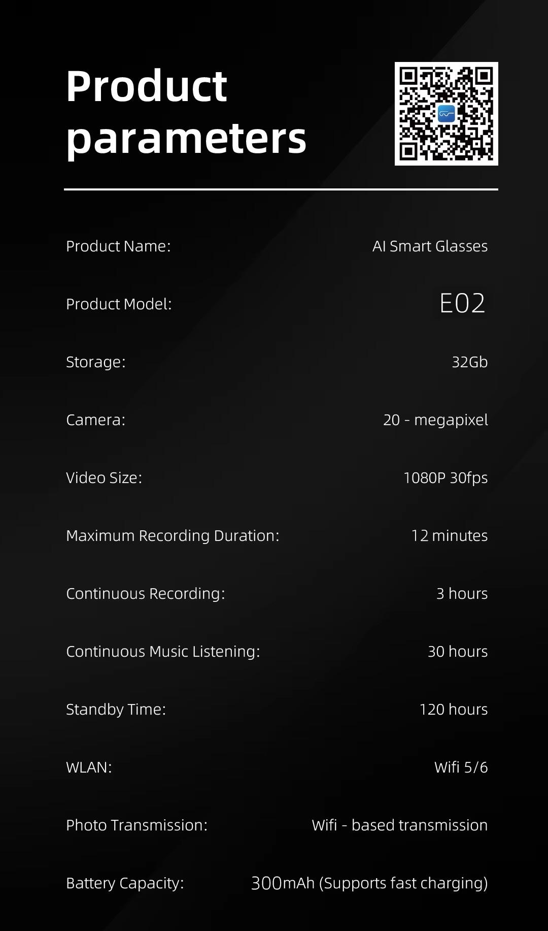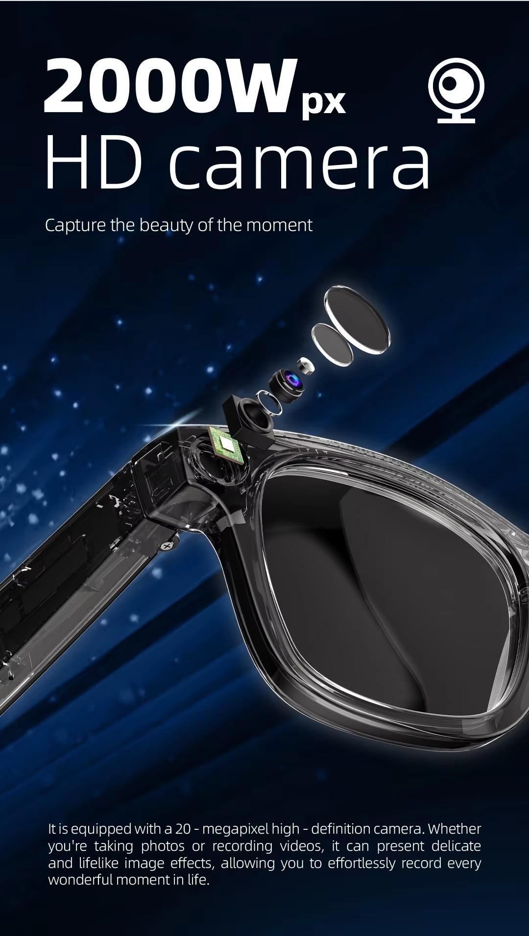 Fashion Smart AI Glasses 2000Wpixel HD Camera Photo Video Voice E02L Bluetooth Call Headset Glasses Wireless Music Earphones