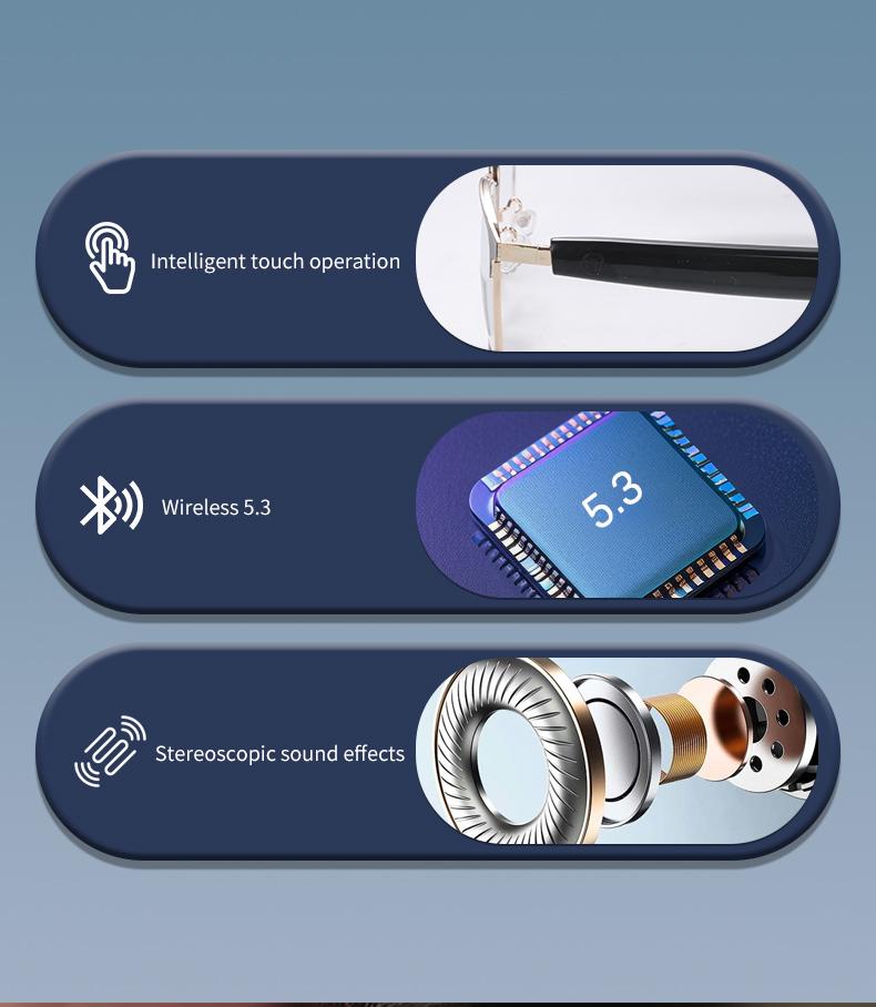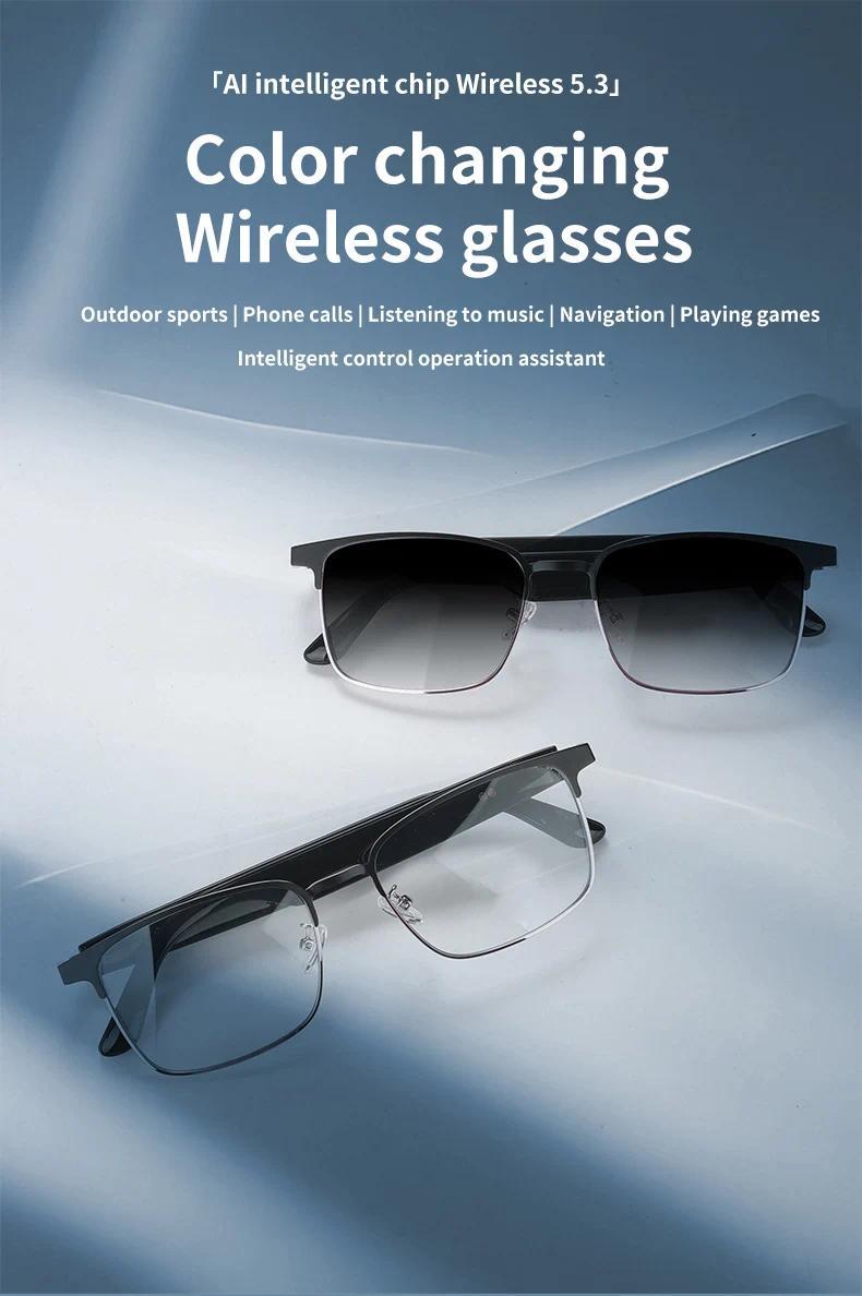 AI voice wake-up, AI photo recognition, AI intelligent question-and-answer interaction, AI smart translation, high-definition photography and video recording (with anti-shake function), recording, Wi-Fi transfer of photos, videos, and recordings to phone, slide to adjust volume, wear detection, dual microphone noise reduction, call noise reduction, intelligent voice assistant, Bluetooth calls, music playback (switch, pause music), low power consumption Jerry + Allwinner main control chip, long-lasting battery life, dual physical buttons plus slide touch for convenient operation, grams lightweight overall weight for comfortable wearing, customizable sunglasses, blue light protection, color-changing, myopia, and other lenses, large{need to be customized}
