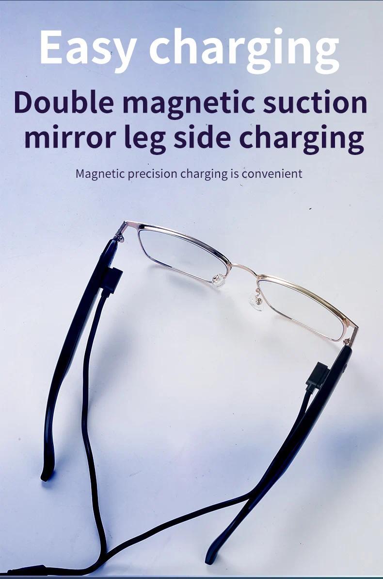 Main control chip:AB5656C Battery:55mAh+55mAh Charging way:Magnetic charging Bluetooth version:BLE5.4 Bluetooth protocol:A2DP,HFP Mode of operation:Touch Transmission distance :10M Waterproof level :Life waterproof Material :ABS+PC+Metal Voltage:DC5V Electric current:50mA*2 Play current (max volume) :22mA Standby current:1mA Lens Material:PC coating Size :162*68*50mm Weight:Glasses 33g + packing box 110g = 143g Language:English Packing:Smart Glasses charging cable, storage pouch, cleaning cloth, user manual, packaging box