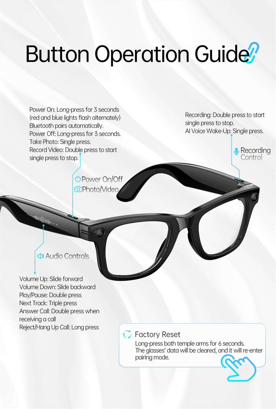 LIGE New 500W Camera Glasses Bluetooth Smart Glasses with Camera Voice Call Music Smart Sunglasses Video Sound Record AI Glasses