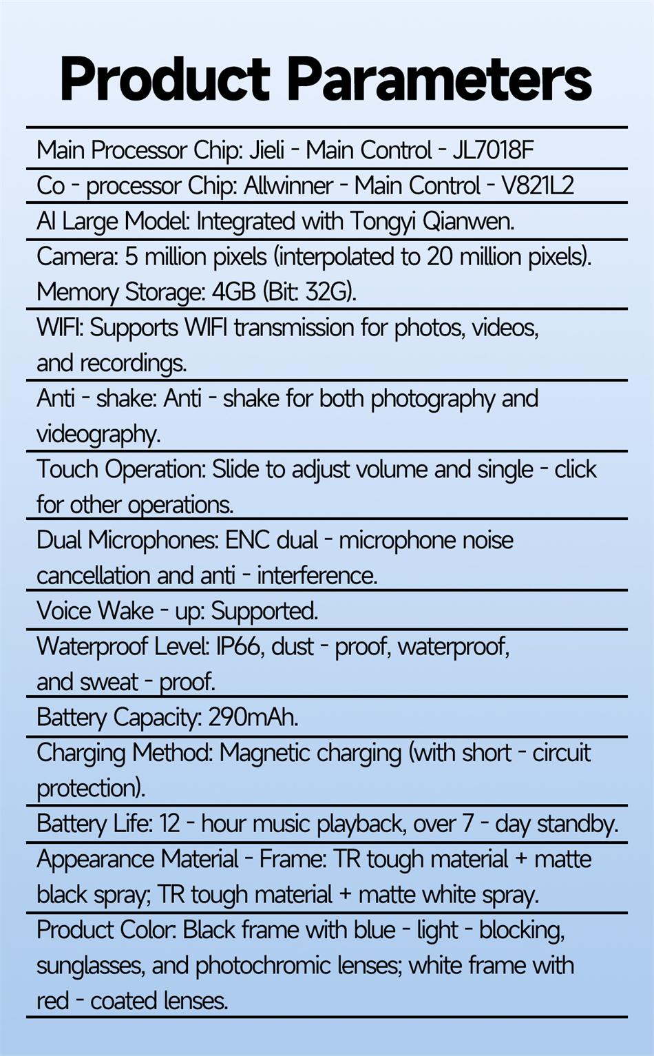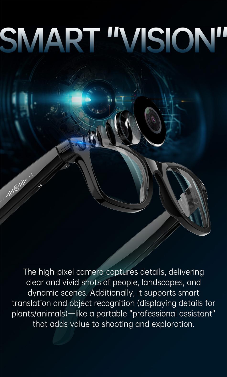 New AI 5MP Camera Smart Glasses 290mAh Waterproof Voice Call Music Bluetooth Smart Sunglasses Video Record Translation Glasees