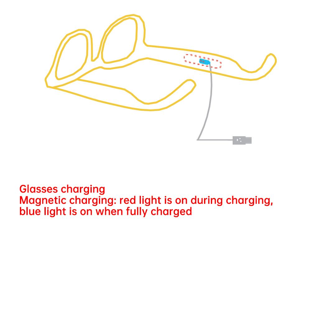 Glasses charging Magnetic charging: red light is on during charging, blue light is on when fully charged