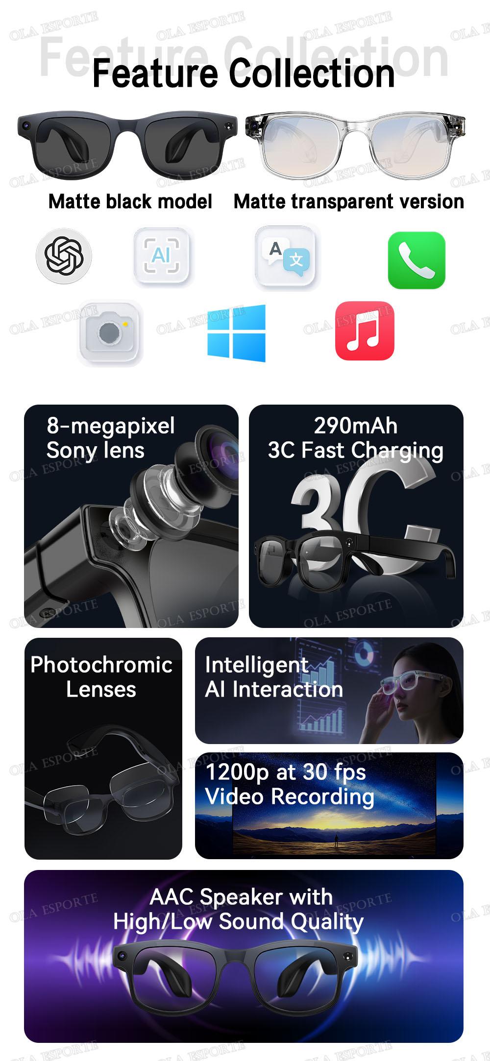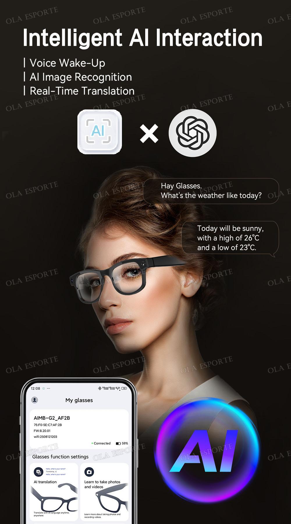 Smart AI Translation photography Glasses Take Photos Recognizing Objects 4K Camera Bluetooth Call Intelligent Recording Glasses