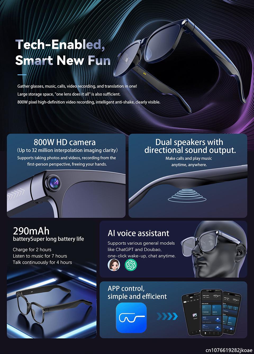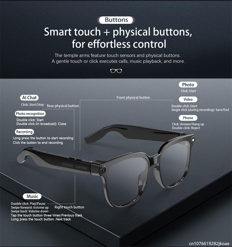 Smart Glasses 8 Million Camera AI Real Time Translation Eyewear Bluetooth Sunglasses Shoot Audio Call Video Player M02S 290mAh