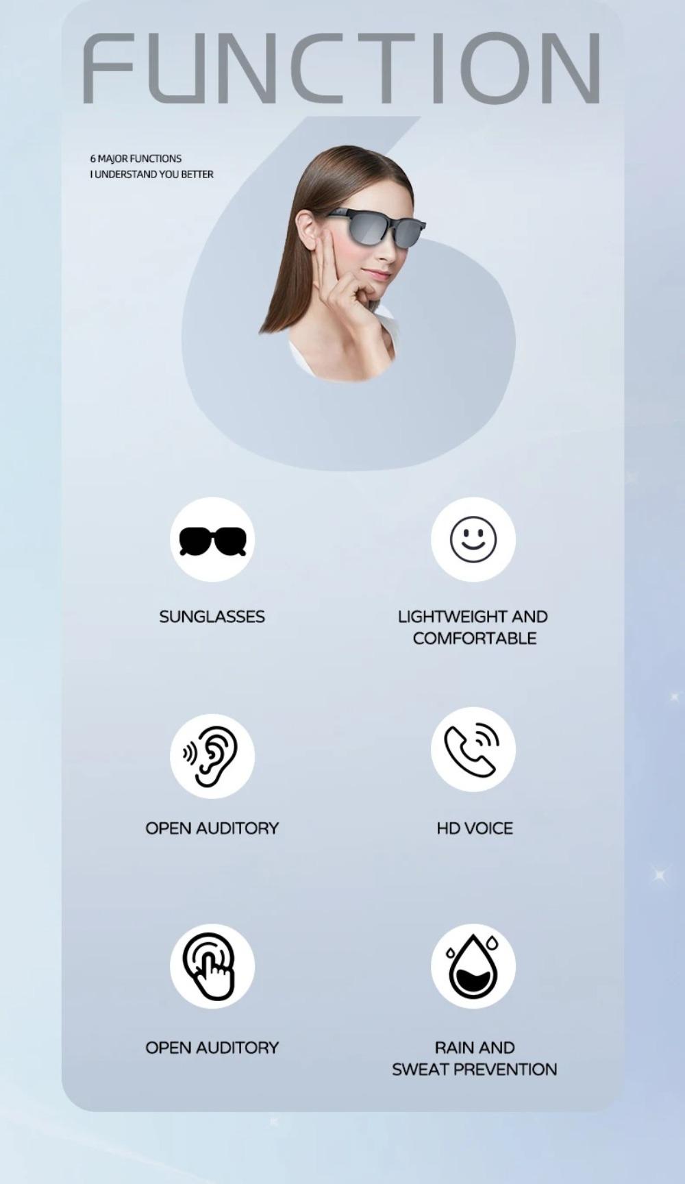 New : AI Smart Glasses Type: AI Smart Glasses Material: ABS Plastic Color: Black Size: 165x150x48mm(6.49x5.90x1.89in) Bluetooth Solution: Bluetooth V5.3 Speaker: 16 mm(0.63 in) Speaker Power: Built-in 75mAh*2 battery Standby Time: Over 60 hours Operating Time: 4-5 hours Charging Time: Approximately 1 hour Communication Range: Up to 10 meters (unobstructed) 144-Language AI Translator: Seamless real-time translation for 144 languages (covering 98% of global languages). Bluetooth 5.3 Stable Audio: 10m ultra-stable connection with dual-channel HD audio transmission, perfect for conference calls and music during workouts. Sport Sunglasses Tech Hybrid: UV400 polarized lenses with anti-slip nose pads, combining sun protection with smart device functionality. All-in-One Sound: Titanium-coated speakers deliver studio-quality sound with adaptive noise reduction for calls/music switching. Package included: 1 x AI Smart Glasses 1 x USB Cable 1 x Manual Note: Size for manual measurement, there may be a 0 to 1 cm(0.39 in) error. And due to the difference between different monitors, the picture may not reflect the actual color of the item.