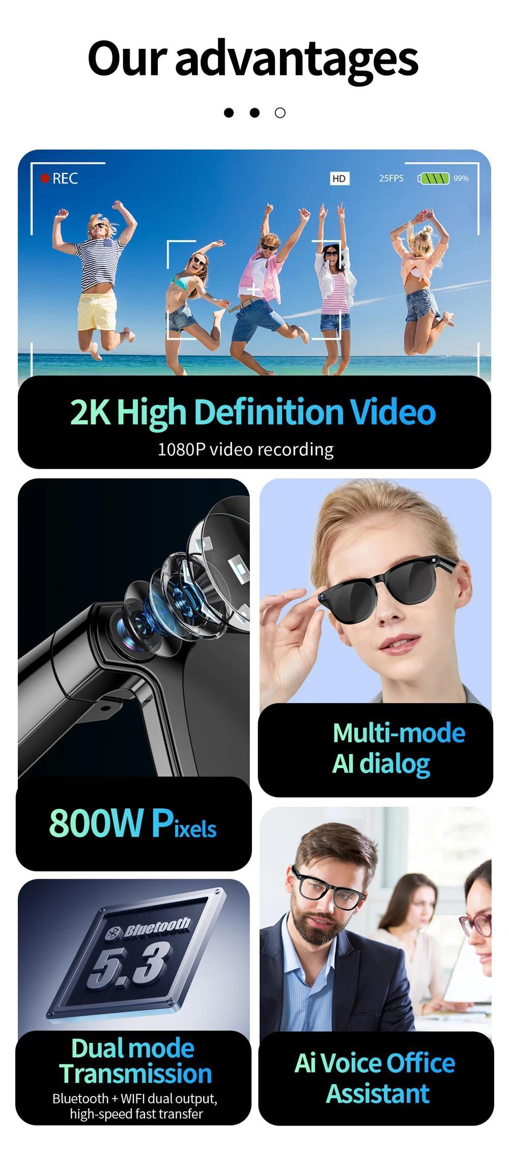 Women AI Smart Glasses 800W HD Camera Anti Blue Light The Map Translation Video Call Take Photos UV Protection Sunglasses Men